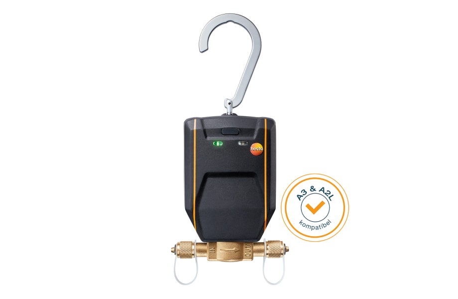 - Intelligentes Bluetooth-Ventil für digitale Kältemittelwaage testo 560i (separat oder als Set erhältlich) für automatische und präzise Kältemittel-Befüllung von Kälteanlagen/Wärmepumpen