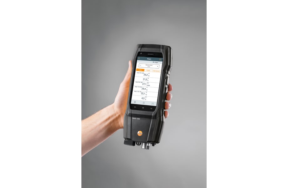 Das TÜV-geprüfte, besonders robuste Abgasanalysegerät testo 300 Longlife mit kratzfestem, versenktem Touchscreen eignet sich durch die integrierte Verdünnung (bis 30.000 ppm CO) besonders für Festbrennstoffe.