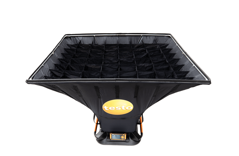 Wechselhaube (1200 x 1200 mm) zur Montage an Volumenstromhaube testo 420 für Messungen an Luft An- und Auslässen. Mit integriertem Gleichrichter für präziseste Messergebnisse.