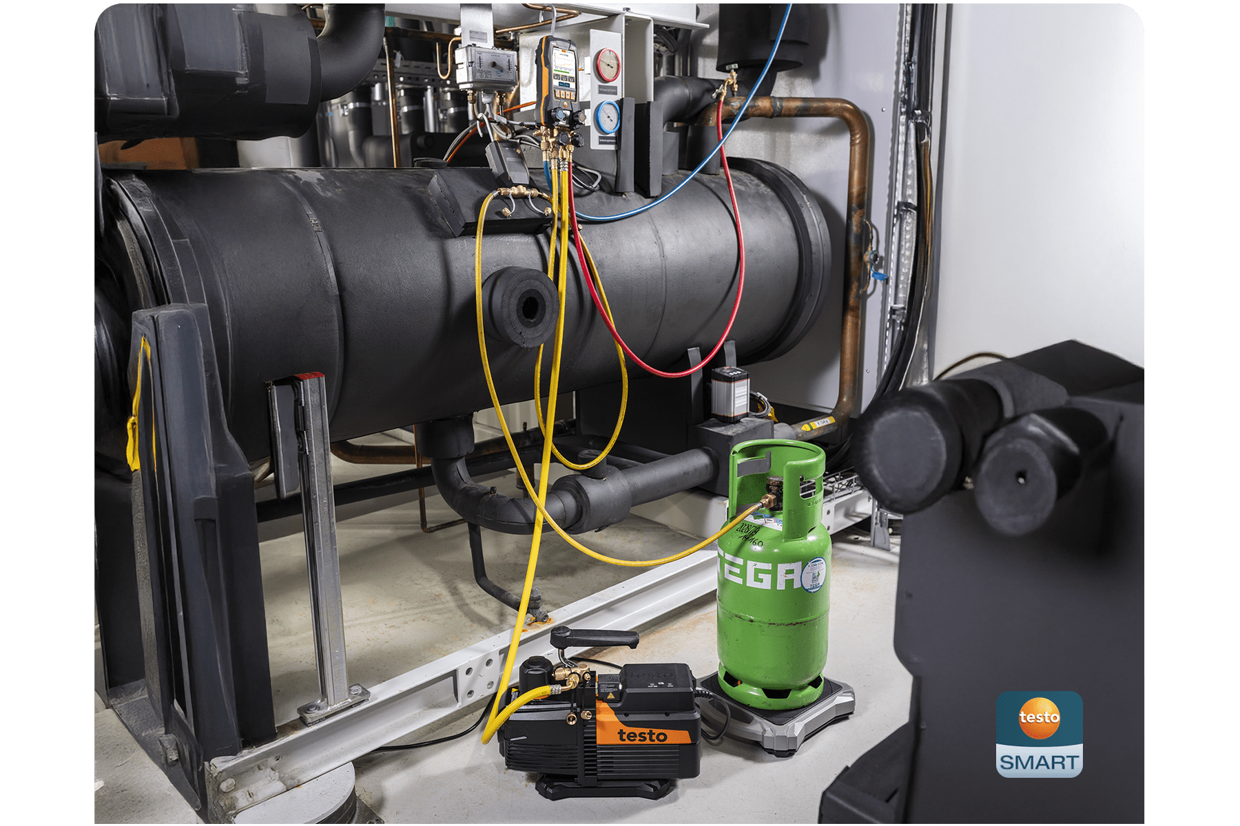 Mit der smarten Vakuumpumpe testo 565i und der Kältemittelwaage testo 560i automatisieren Sie entscheidende Schritte bei der Befüllung und Evakuierung von Anlagen – für maximale Prozesssicherheit und mehr Energieeffizienz. Erleben Sie, wie einfach nachhaltige Kältetechnik heute sein kann.