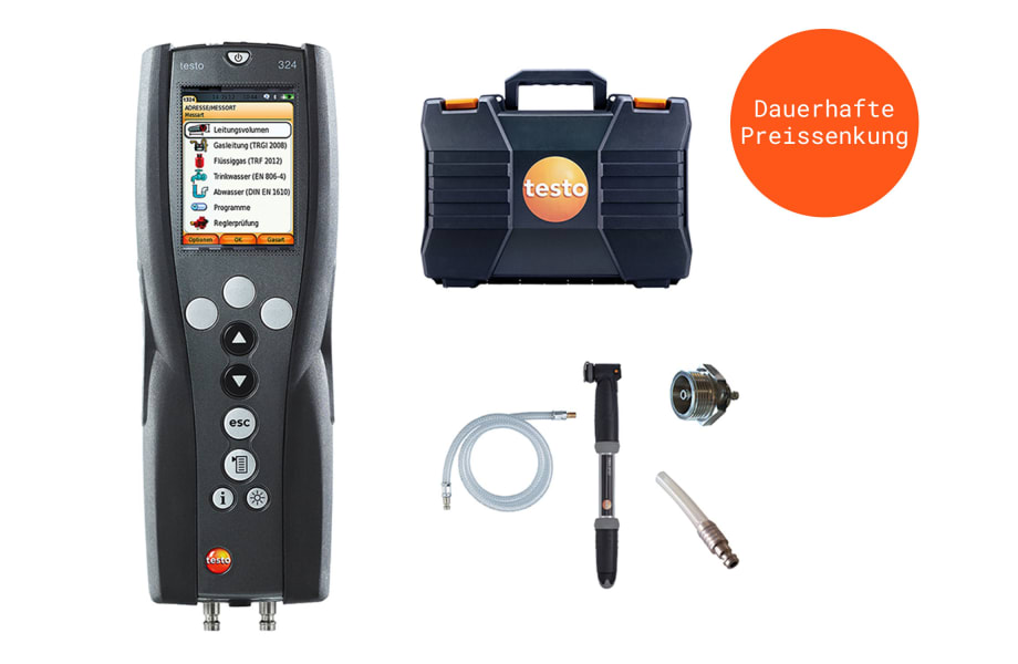 • DVGW-geprüftes Druck- und Leckmengenmessgerät testo 324 inklusive Akku und Kalibrierprotokoll