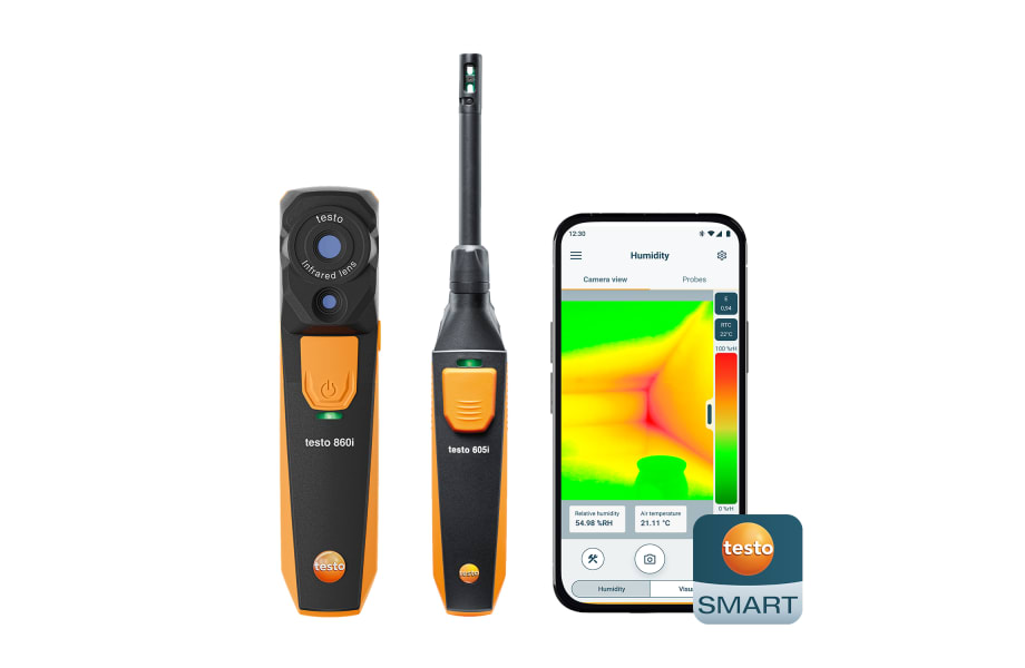 Die Schimmelindikation erfolgt übersichtlich nach dem Ampelprinzip (grün, gelb, rot). Alle Messdaten werden über die testo Smart App ausgewertet, dokumentiert und inklusive Bilder direkt vor Ort als Bericht gespeichert und versendet. Lieferung im praktischen Set mit passender Transporttasche.