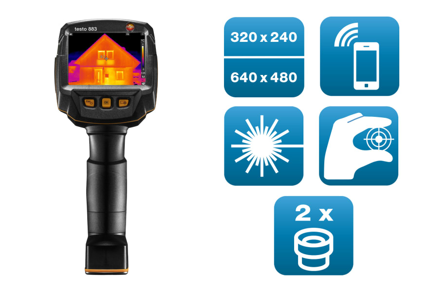 Für Gebäude-Energieberater entwickelt: Die Wärmebildkamera testo 883-2 ist der verlässliche Partner bei der Suche nach thermischen Anomalien. Dank bester Wärmebild-Qualität, kostenloser Analyse- und Berichts-Software sowie Weitwinkel- und Teleobjektiv können Sie konkrete Optimierungsmaßnahmen empfehlen und sparen dabei auch noch Zeit. Profitieren Sie von den Set-Vorteilen: Mit Teleobjektiv 12° x 9°, Zusatzakku und Akkuladestation sind Sie sofort startklar und bestens gerüstet – auch für Messungen aus größeren Entfernungen und für lange Messeinsätze.