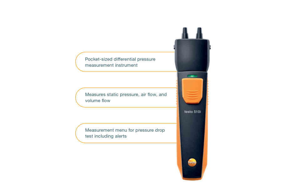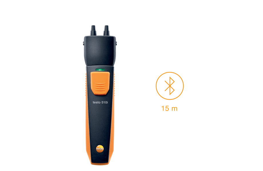 Use your smartphone or tablet as a display: installed on a terminal device, the testo Smart App allows you to view testo 510i readings conveniently and carry out reliable timed and multi-point mean calculation. The App also includes a measurement menu for the pressure drop test. All measurement data can be displayed as a chart or in table form. The measurement data log can be emailed directly as a PDF or Excel file.System requirements: