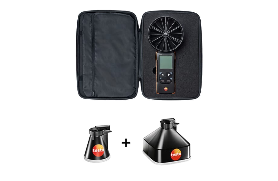 The testo 417 Kit 1 is a smart, compact vane anemometer with measurement funnels for efficient air velocity and volume flow measurement at vents and grilles. Designed for residential ventilation adjustment, with full App support for fast configuration and documentation.