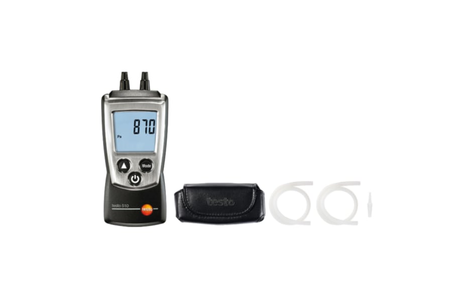 testo 510 - Differential Pressure Meter, protection cap, belt holder, 2 x connection hoses, wrist strap, calibration protocol