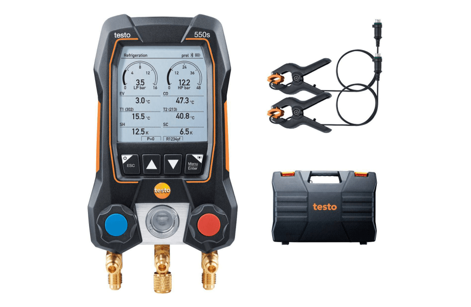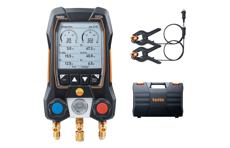 testo 550s Basic Kit - Smart digital manifold with fixed cable clamp temperature probes (with sightglass)