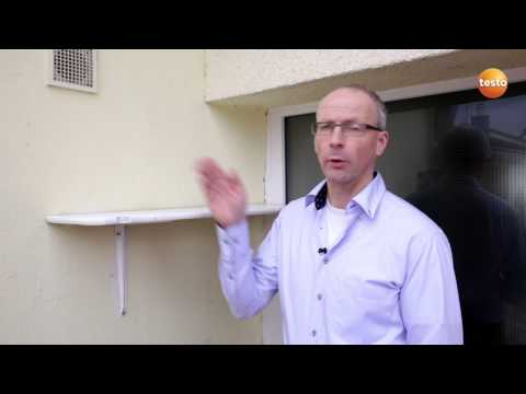 A radio probe is needed to determine the U-value; this is placed in position outside. It transmits the readings to the measuring instrument inside. To measure the surface temperature the three wires of the U-value probe are attached to the wall with plasticine. The air temperature is recorded by a sensor located on the probe plug. The measuring instrument testo 635-2 automatically calculates the U-value from the three values and shows this on the display. The advantage: there is no need for manual calculation; the result is quick and accurate.