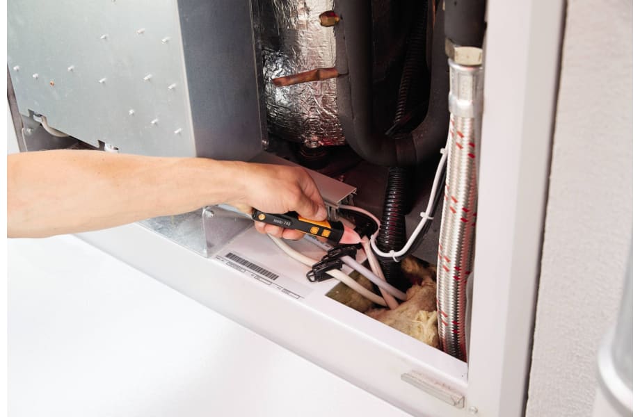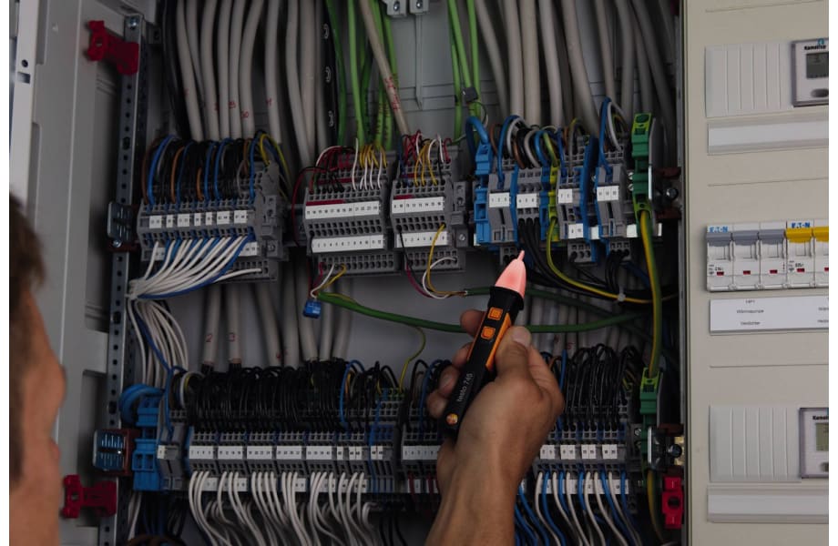 Compared to the testo 755-1, the testo 755-2 has an increased voltage range of up to 1,000 V and enables rotating magnetic field measurement along with single pole voltage testing to determine quickly whether conductors are live.The testo 745 Non-Contact Voltage (NCV) Tester quickly checks for the presence of voltage in AC powered systems. It can be safely used up to 1000 VAC. When AC voltage is detected, the testo 745 gives indication by flashing RED LEDs and buzzing audible tones. You can easily determine the hot and neutral legs of an outlet without lengthy and risky removal of the outlet. The testo 745 NCV has a built-in Low Pass Filter which greatly reduces high frequency interference which causes false indications. The included LED flashlight is bright and focused to make testing simple in dark spaces. It also includes a low battery indication and is waterproof and dustproof rated per IP 67. The testo 745 is rated to CAT III 1000V and CAT IV 600 V.