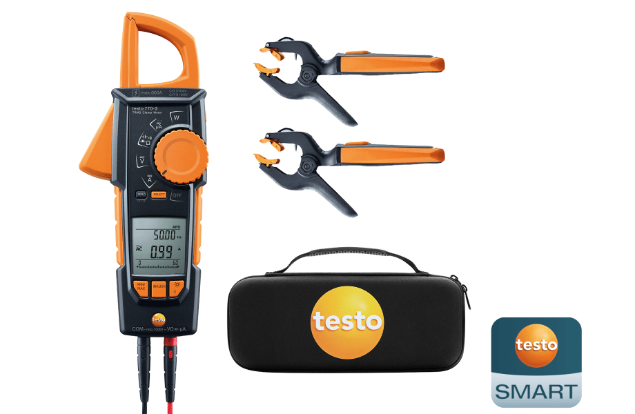 The testo Monobloc Heat Pump Testing Kit is an essential solution for engineers installing, servicing, and maintaining monobloc heat pumps. This all-in-one kit includes the testo 770-3 clamp meter for precise measurement of electrical parameters, such as voltage, current, resistance, ensuring accurate system diagnostics.For monitoring system performance, the kit also features 2x testo 115i temperature clamp probes, designed to measure flow and return temperatures on heat pump pipework. These measurements are crucial for assessing efficiency and identifying potential issues in heat pump operation.