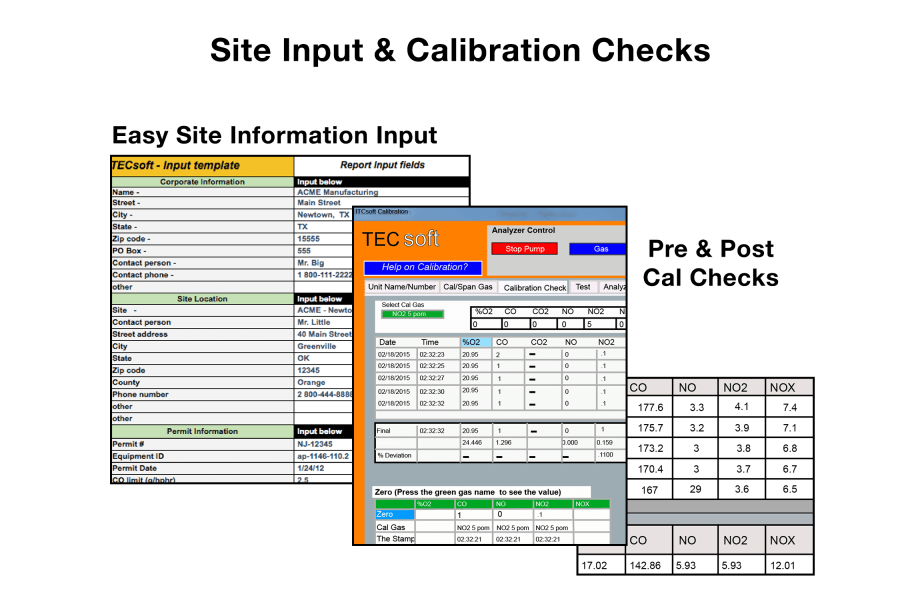 TECsoft software is your interface to control the testo 350 during compliance testing or combustion tuning. Pre- and Post-Calibration data is quickly displayed and the percent deviation calculated. Quickly see if your Span and Zero gases are within your testing protocol specifications.