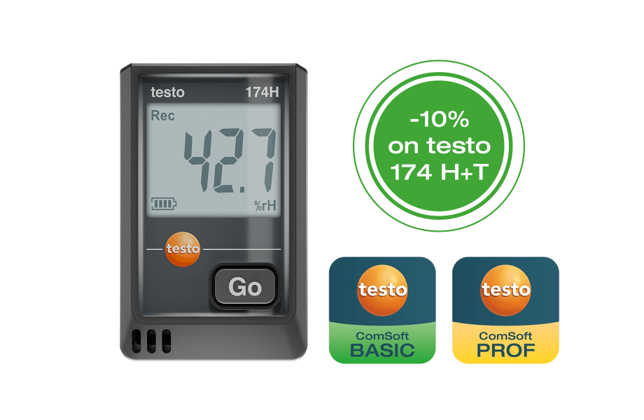 The testo 174 H mini data logger is ideal for efficient commissioning, inspection and maintenance of all HVAC/R systems, as well as for convenient fault diagnosis and monitoring of the indoor climate. It reliably records temperature and humidity within a measuring range of -22 °F to 158 °F, displays current values and limit value violations and stores up to 16,000 readings. With user-friendly programming and evaluation via professional software, including Excel export and PDF reporting, it provides accurate and convenient monitoring and documentation.