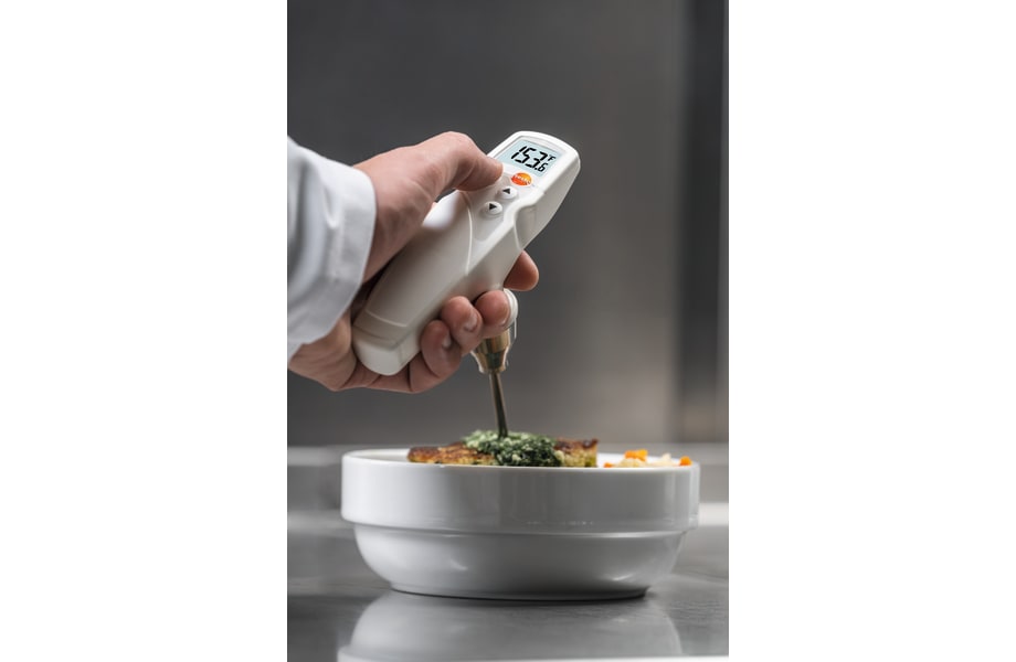 testo 205 - a robust food penetration pH/°C measuring instrument with automatic temperature compensation. The robust penetration measuring tip is interchangeable and not affected by dirt and dust thanks to the hole diaphragm.