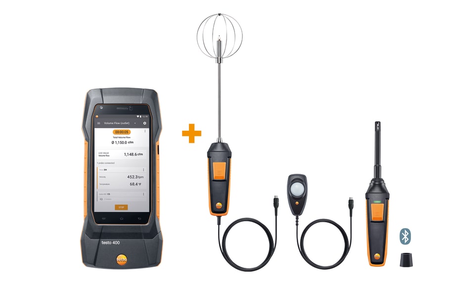 testo 400 is the universal measuring instrument for all TAB / Commissioning and IAQ professionals, enabling them to measure, document and analyze all IAQ parameters with just one instrument.
