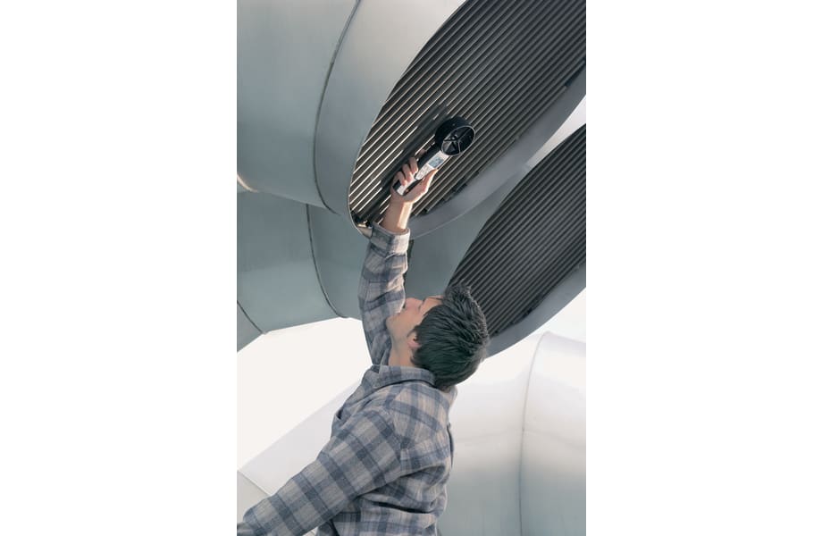 A volumetric flow rate funnel and a large vane are ideal when taking readings at the suction or blowing vents of air grilles and poppet valves. The entire volumetric flow is recorded with the aid of the funnel without the need for conversion on the basis of the flow velocity and area. This method of flow measurement is simple and reliable.