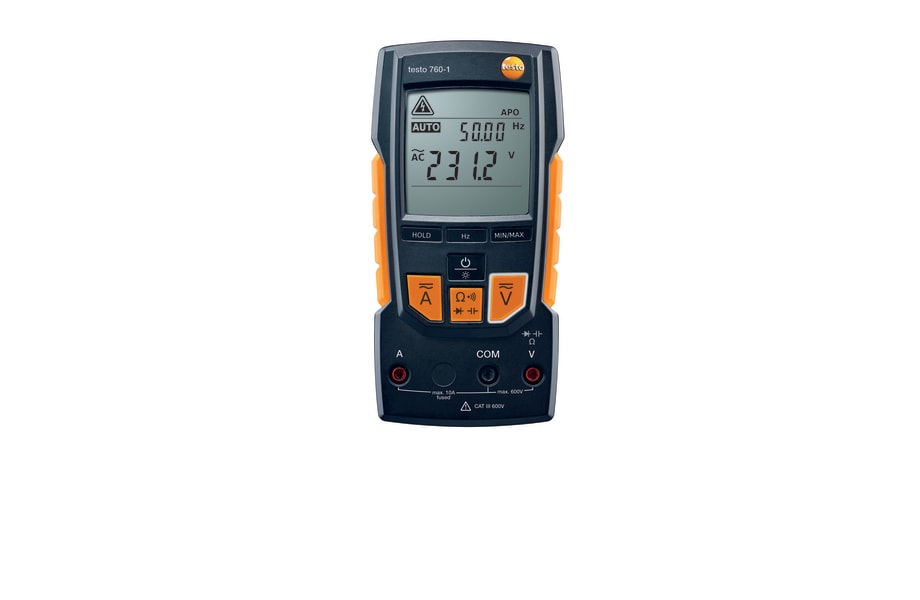 Sin mando giratorio, sin riesgos: Con el multímetro digital testo 760-1 medirá de forma más fácil y más segura que nunca todos los parámetros eléctricos importantes. Los parámetros de medición se reconocen automáticamente basándose en la asignación de los conectores de medición. No es necesario configurar nada; no es posible confundirse.