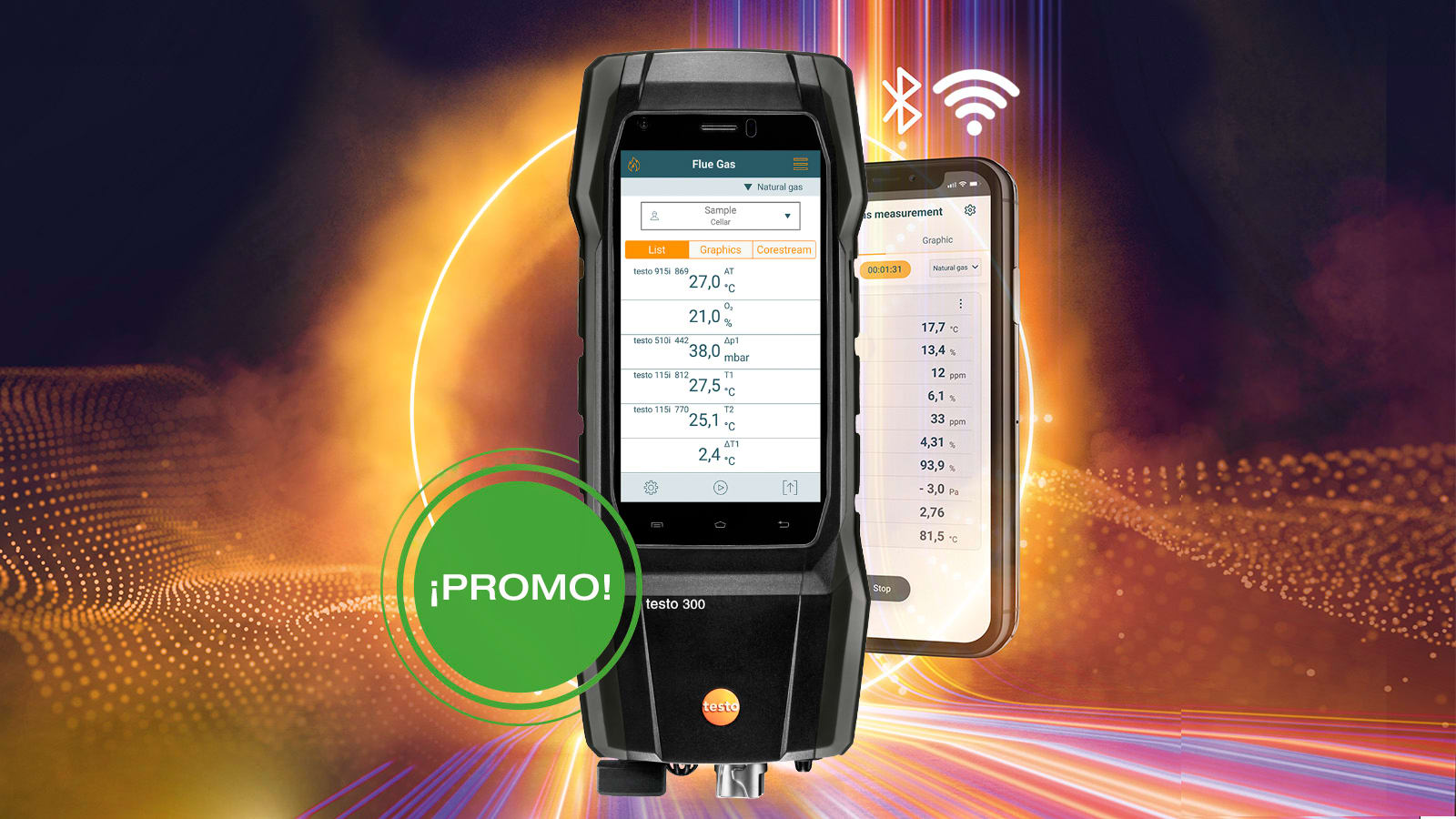 Medición de los gases de combustión cómoda e inteligente en sistemas de calefacción con el analizador testo 300. Sensores de alta calidad, un manejo intuitivo con tecnología Smart-Touch y funciones inteligentes tales como la documentación eficiente y el envío de protocolos por correo electrónico, facilitan el trabajo diario. ¡Y todo a un precio imbatible!