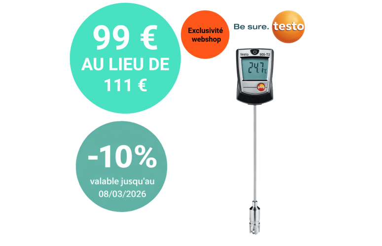 • Ce certificat documente l’étalonnage ISO de votre appareil de mesure/sonde. L’étalonnage s’effectue à des points de mesure au choix dans la plage de -15 à +480 °C.