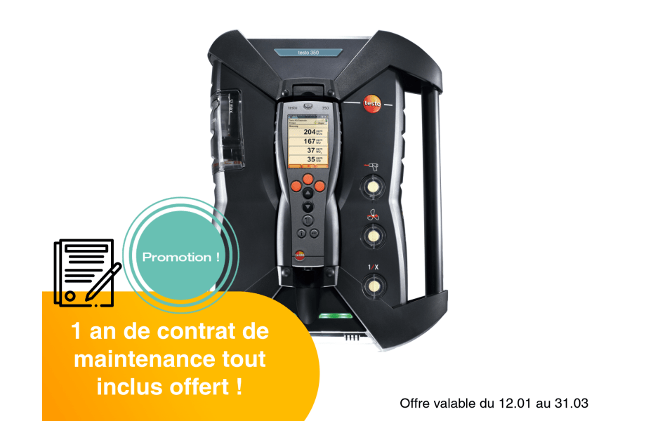 Le Kit testo 350 BIOMASSE est une solution complète et performante pour l’analyse des émissions dans les installations fonctionnant aux combustibles bois, granulés, déchets organiques ou végétaux. Spécialement pensé pour les exigences du secteur biomasse, il permet de mesurer avec précision les principaux gaz polluants tels que l’O₂, le CO, le NO et le SO₂, en s’adaptant aux conditions réelles du terrain. De plus, en fonction des besoins, deux capteurs de gaz suplémentaires peuvent être ajoutés.
