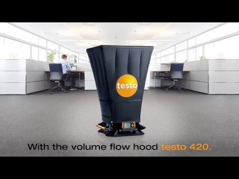 A testo 420 zsákos térfogatáram mérő műszer lehetővé teszi a légsebesség, a térfogatáram, az abszolút nyomás, a hőmérséklet és a relatív páratartalom mérését. Az automatikus nullázás biztosítja a nagy pontosságot alacsony nyomáson.
