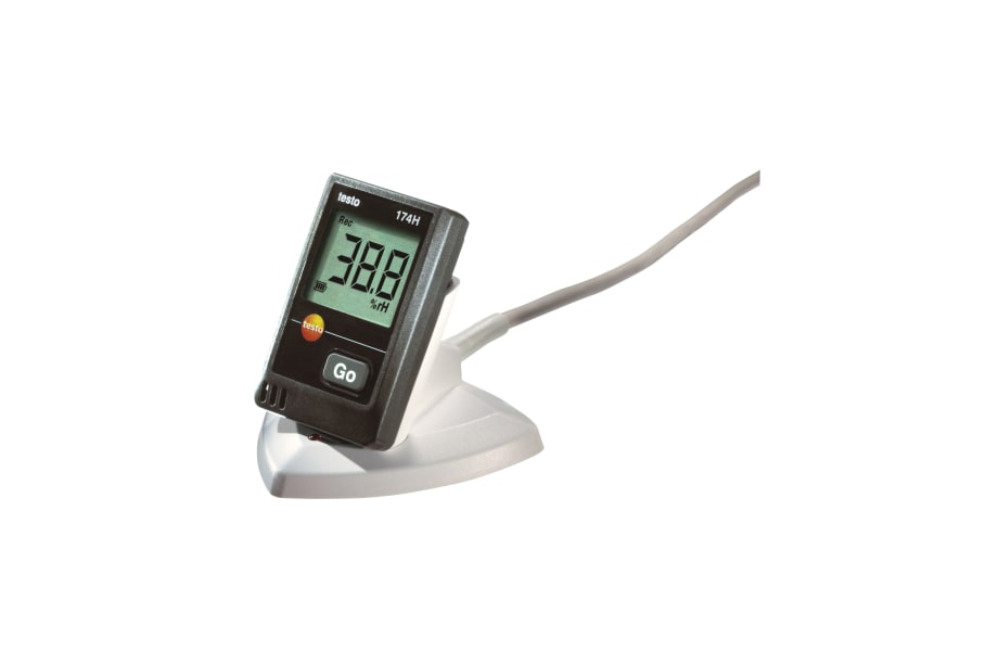 A testo 174H mini adatgyűjtő hosszú élettartamú, beépített érzékelői a környező levegő hőmérséklet és páratartalom mérésére szolgálnak. A készülék 16.000 mért érték eltárolására képes. A kijelzőről az aktuálisan mért értékek mellett minden határértékek átlépés is egyszerűen leolvasható.