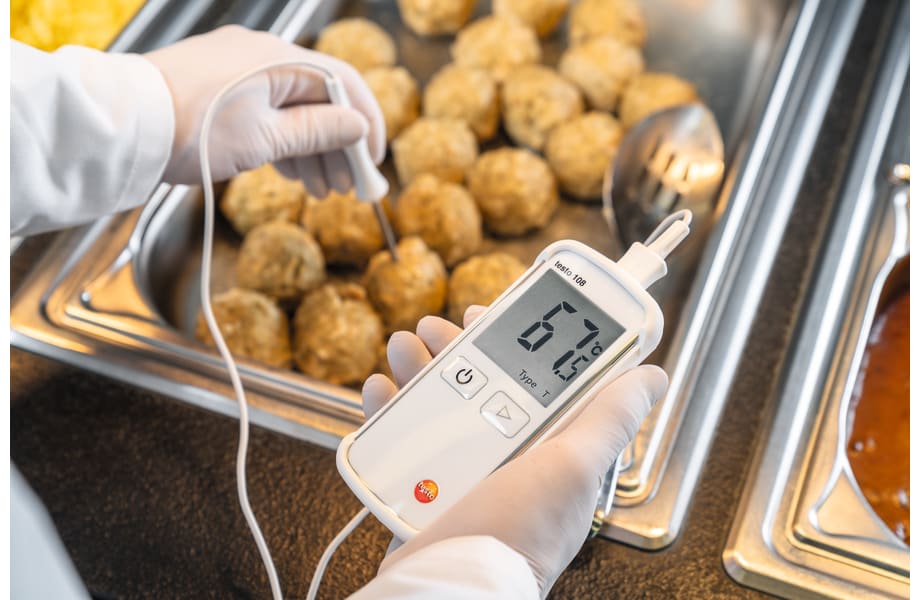 Che si tratti di trasporto, magazzinaggio e lavorazione di alimenti o che sia utilizzato in un ristorante, o nelle catene di ristorazione: con il termometro testo 108 integrate senza problemi la misura della temperatura nei vostri processi di lavoro quotidiano e garantite la qualità dei vostri alimenti, il tutto in conformità con le linee guida HACCP.