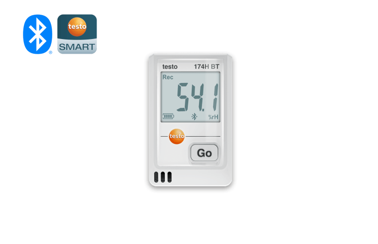Il mini data logger testo 174 H BT è adatto al monitoraggio durante lo stoccaggio di merci sensibili alle temperature e all’umidità come alimenti o in archivi, nonché al controllo delle condizioni climatiche in edifici. Misura con precisione la temperatura e l’umidità nel campo da -20 °C a +70 °C, mostra i valori attuali e i superamenti dei valori limite e salva fino a 16.000 valori misurati.