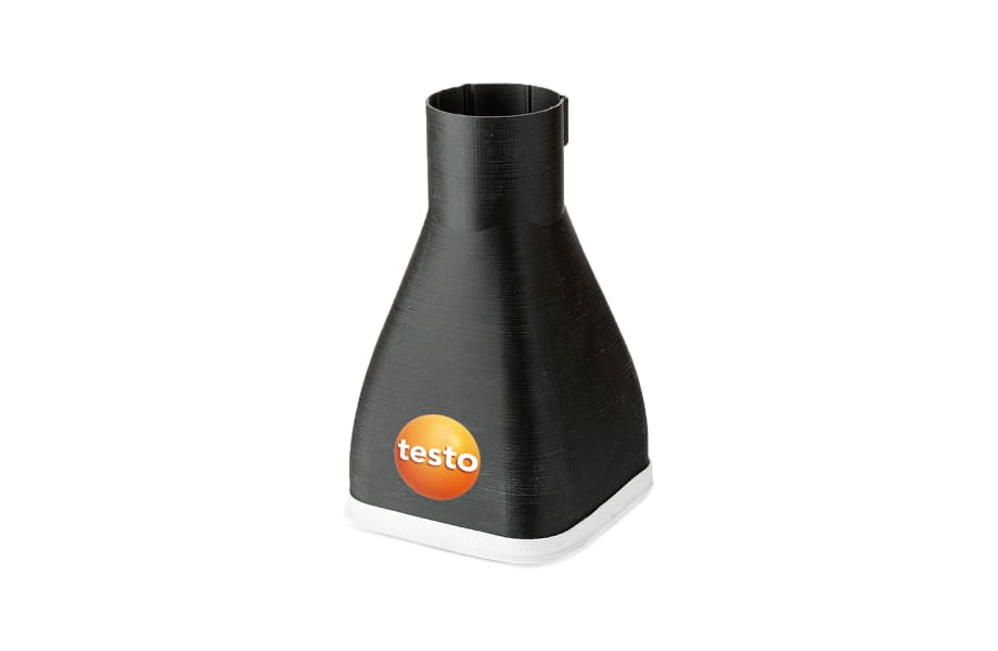 Deze uitbreidingsset trechter voor luchtdebietsmetingen maakt het opmeten van moeilijk bereikbare luchtroosters mogelijk. Het meten van luchtsdebieten is niet altijd even eenvoudig omdat roosters vaak op niet meetbare plaatsen voorzien worden. Ook kunnen de bestaande trechters van Testo niet in alle omstandigheden ingezet worden. Tot nu toe dienden deze roosters als onmeetbaar op het ventilatieverslag vermeld te worden. Dit zorgde bij installateur, klant als architect vaak voor onaangename situaties.