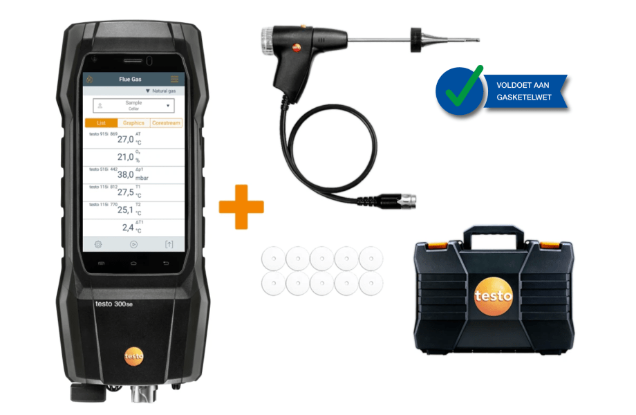 • testo 300 Longlife rookgasanalyser met O₂- en CO₂-gecompenseerde sensor tot 30.000 ppm