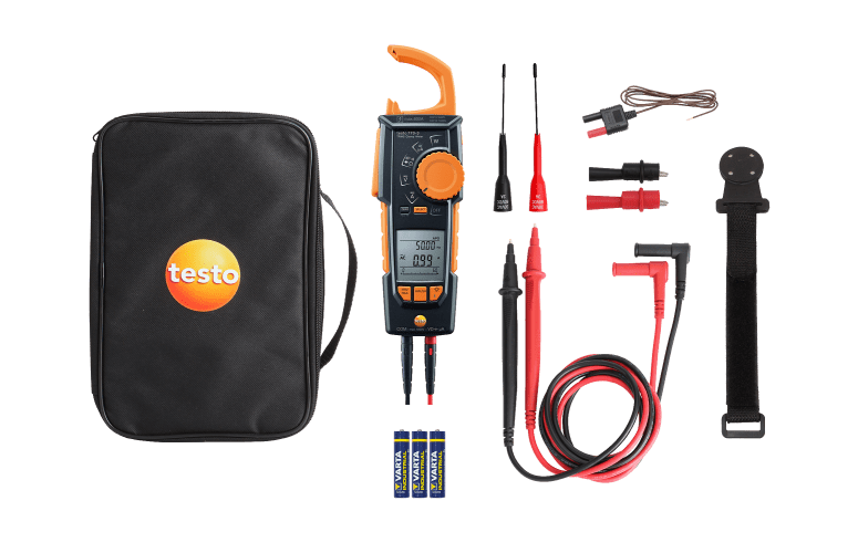 These high-quality standard measuring cables with an angled plug and an 18 mm long tip can be attached to Testo clamp meters, Testo digital multimeters or other makes of multimeter. The rubber-coated grips of the standard measuring cables offer a secure hold and so ensure easy measurement of electrical parameters.1 set of standard measuring cables (angled plug), tip Ø: 2 mm, tip length: 18 mm.