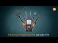 Medição precisa e confiável de todos os parâmetros de velocidade do ar e IAQ com apenas um instrumento de medição: o 440 possui operação intuitiva com menus de medição claramente estruturados. Ajuste os sistemas de ar condicionado e ventilação, monitore a qualidade do ar ou realize medições de nível de conforto - graças às versáteis opções de combinação com sondas digitais de alta qualidade (sondas disponíveis para encomenda separadamente).
