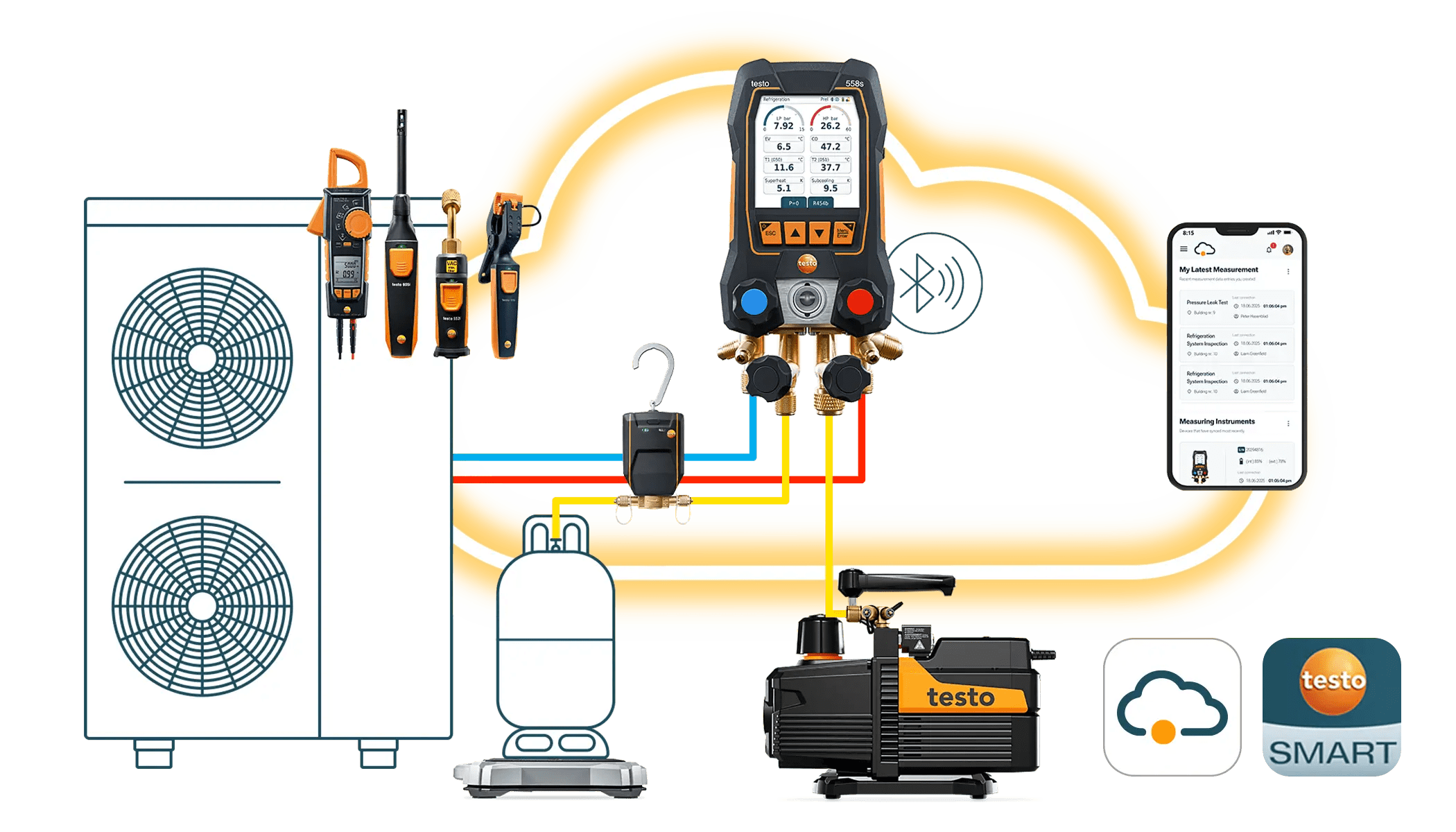 Um sistema de refrigeração em rede que reúne dispositivos, aplicativos e nuvem - desde a instalação até a evacuação e o enchimento, cada etapa funciona como uma única unidade desde o início.