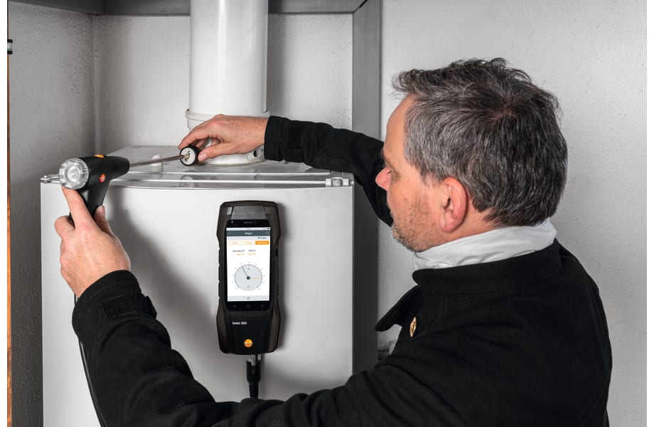 Realize trabalhos de instalação e manutenção em sistemas de aquecimento e queimadores várias vezes ao dia utilizando o analisador de gases de combustão, incluindo sensores Longlife. O analisador de combustão testo 300 Longlife "NEXT LEVEL" testado pelo TÜV, vem equipado com sensor de O2 e sensor de CO com compensação H2 até 30 000 ppm, sonda do gás de combustão modular testada pelo TÜV, mala e acessórios práticos, como o novo conector Bluetooth testo.