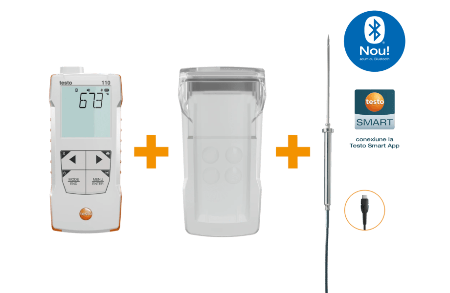 testo 110 alimentar este un instrument de măsurare a temperaturii extrem de precis și ușor de utilizat, pentru industria alimentară: de la producție la depozitare și transport, până la preparare și vânzare.