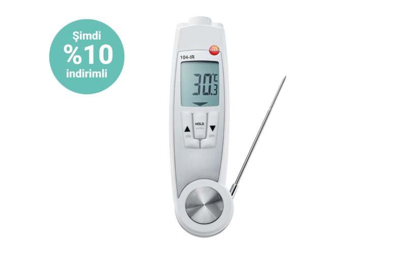 Gıdaların sıcaklık değerleri, bakterilerin oluşması ve çoğalması dolayısıyla da insan sağlığı ve ürün kalitesi açısından hayati bir öneme sahiptir. Gıda güvenliğini sağlamak için yerine getirilmesi gereken yükümlülüklerin başında gıdaların sıcaklık değerlerini izleyerek soğuk zincirin kırılmadığından emin olmak gelir. Özellikle mal kabulünde, tek tek gıdaların veya tüm gıda paletlerinin yüzey sıcaklıklarının temassız bir şekilde ölçülmesi gerekir. Testo 104-IR infrared ve batırma tipi termometre tüm bunları yapmanıza olanak tanır. Size ayrıca şu avantajları sunar: