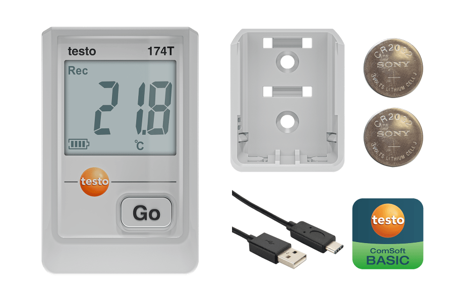 testo 174 T 迷你型溫度數據記錄儀面向食品和製藥行業,確保使用者產品的存儲溫度條件符合規定。 測量範圍 -30°C~+70°C,操作簡便,可確保對溫度進行全面可靠的監測。 專業配套軟體自帶USB-C介面,支援Excel匯出,可直觀讀取數據,優化數據收集、分析和記錄過程,幫助用戶節省時間,力求合規。
