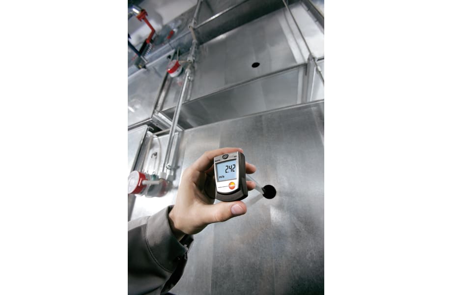 我们的热敏风速仪testo 405可以通过高成本效益的方式测量低空气流速。它可以同时精确测量空气流速、体积流量和温度,并配有300mm长的伸缩杆。
